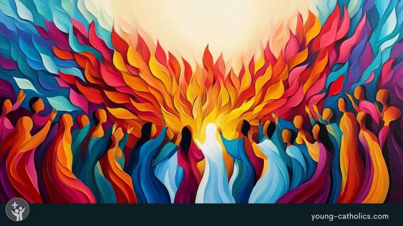 “When the day of Pentecost had come, they were all together in one place. And suddenly from heaven there came a sound like the rush of a violent wind, and it filled the entire house where they were sitting. Divided tongues, as of fire, appeared among them, and a tongue rested on each of them. All of them were filled with the Holy Spirit and began to speak in other languages, as the Spirit gave them ability.”